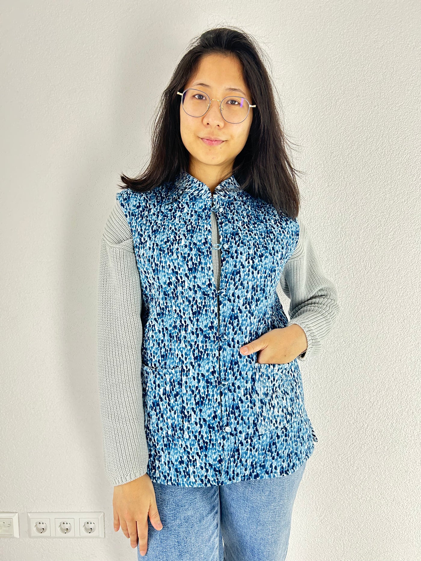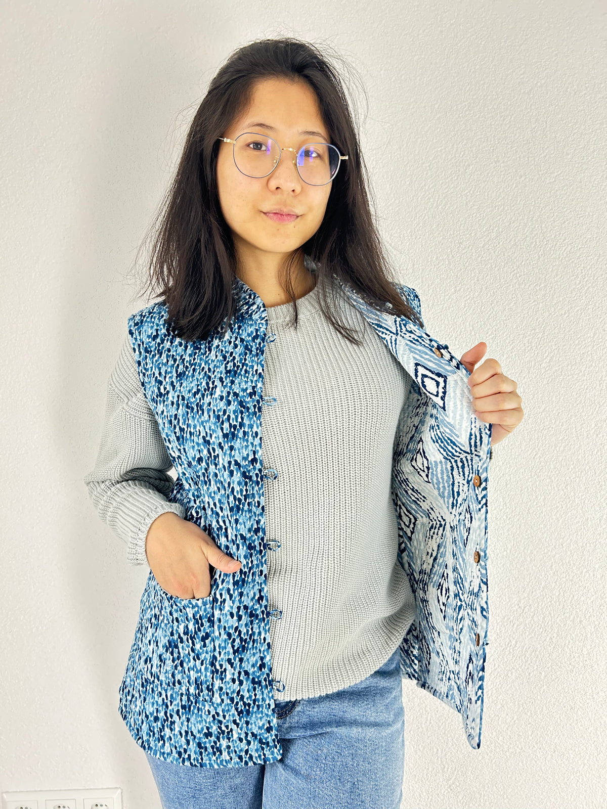 Wrap yourself in craftsmanship and comfort with our Blue Mirage Handblock Reversible Cotton Vest, a versatile layering piece that embodies heritage and modernity.