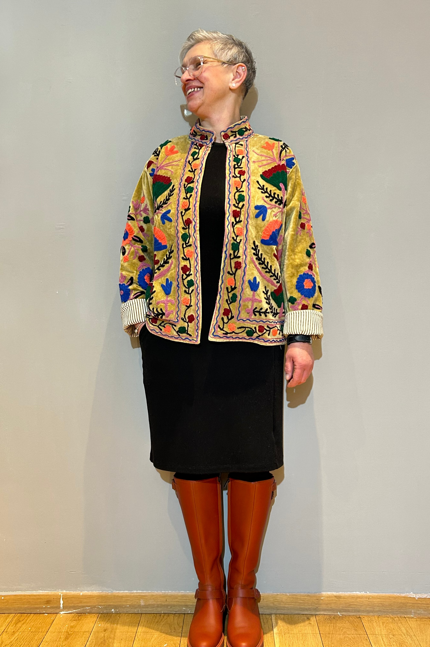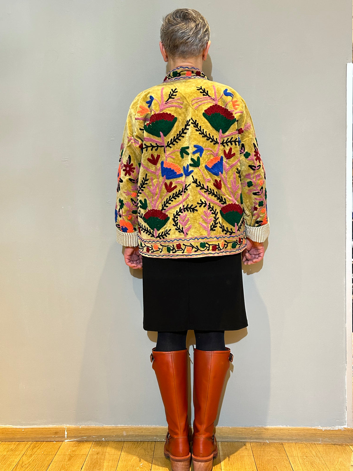 Golden Turmeric Hand-Embroidered Velvet Suzani Jacket