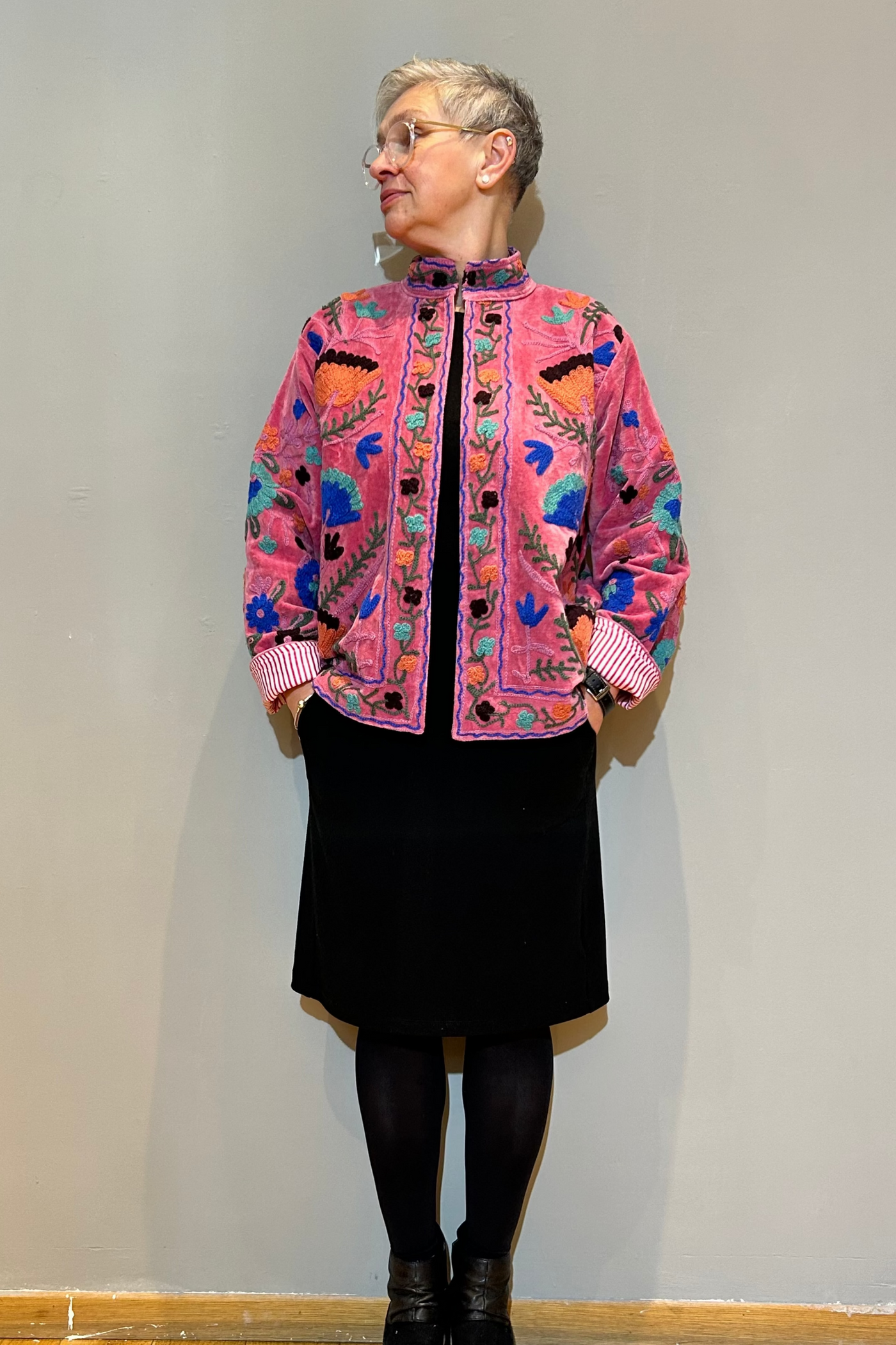 Rose Blush Hand-Embroidered Velvet Suzani Jacket – Nirvana index