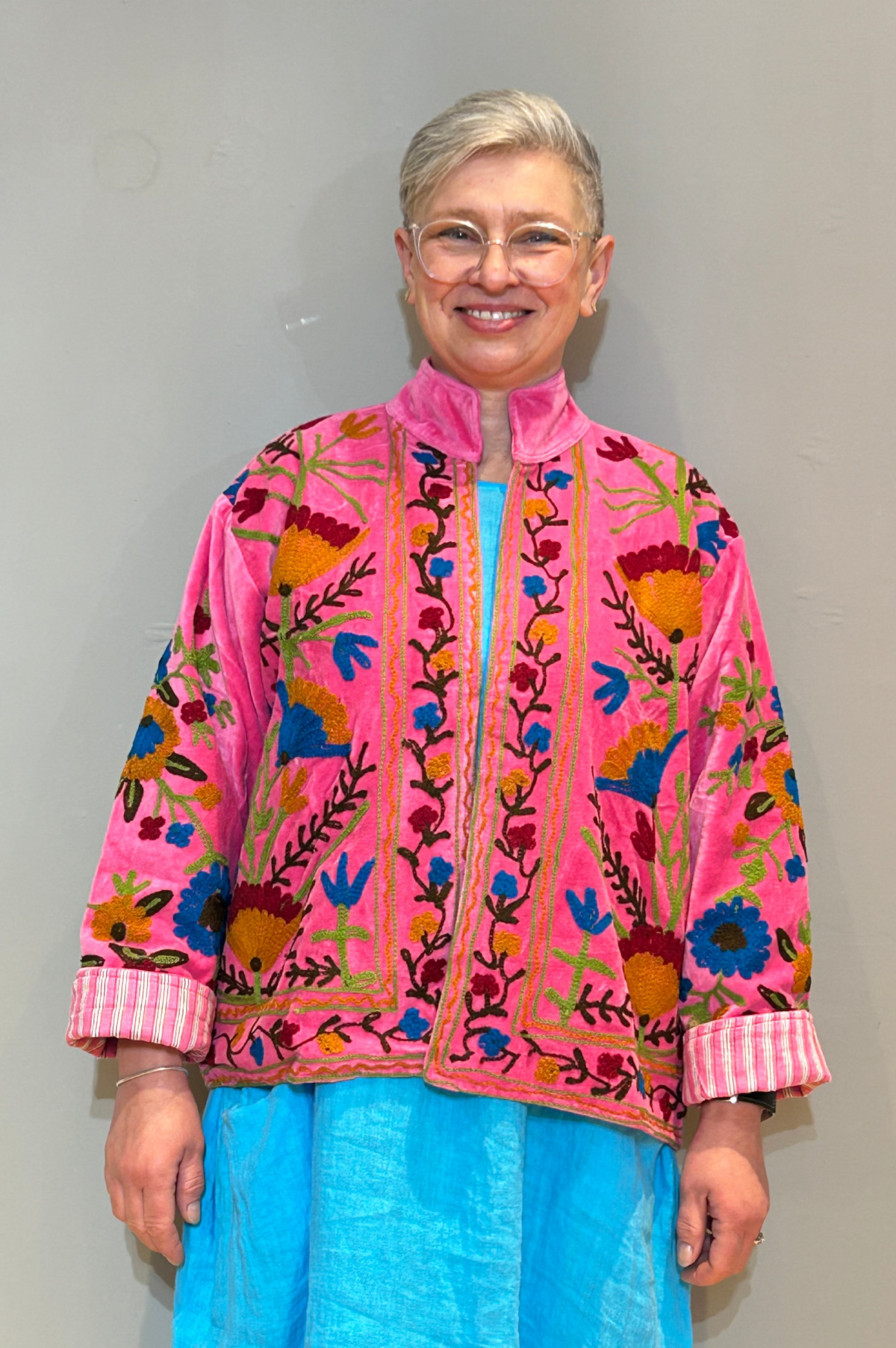 Hand-Embroidered Suzani Velvet Jacket Pink | Artisan Bohemian Fashion – Nirvana index
