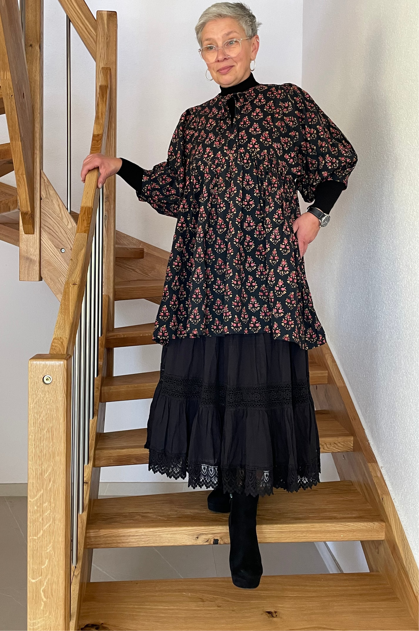 Every Midnight Blossom Dress is made by hand, supporting India’s artisan communities and preserving centuries-old textile traditions. Each piece carries its own character — a reminder that true beauty lies in imperfection and authenticity.