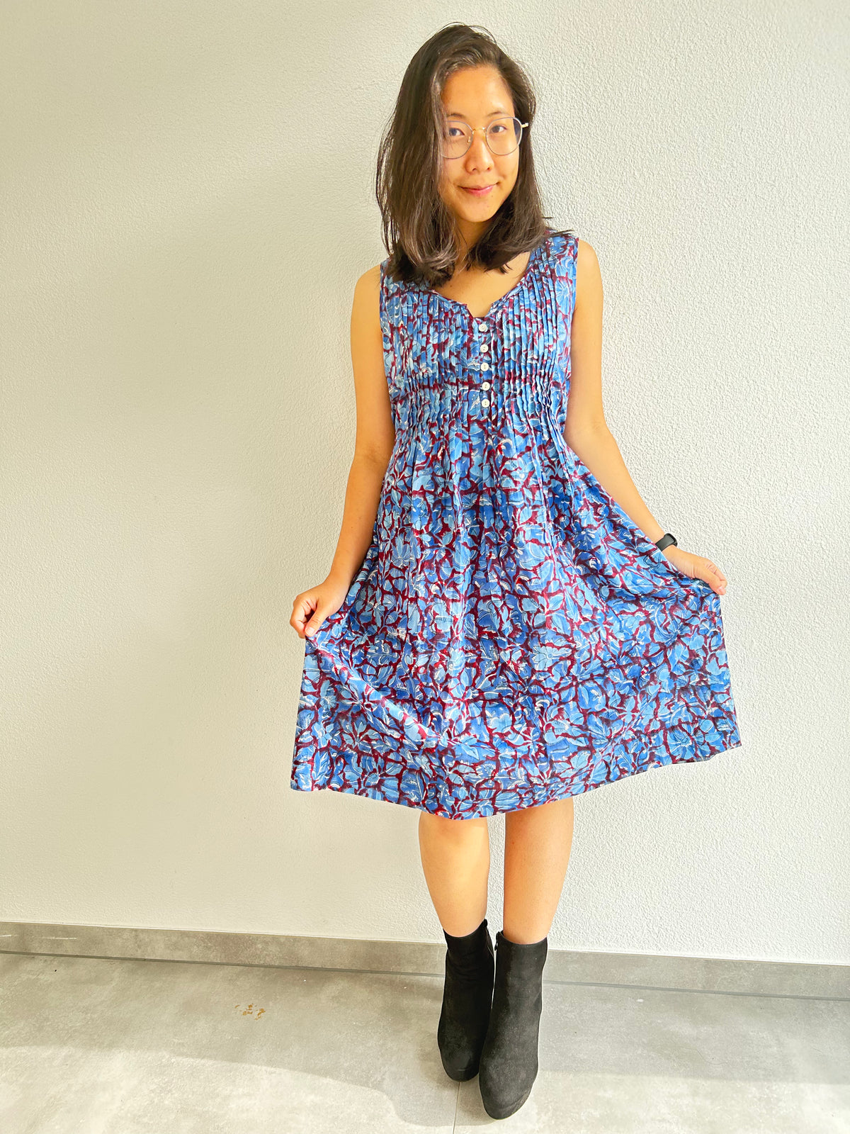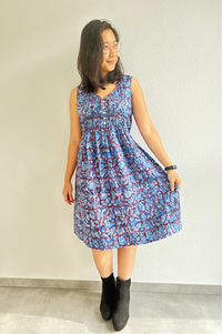 Made from 100% fine cotton, our Blue Vine Dress is hand block printed by skilled artisans in India using traditional wooden blocks.