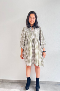 Olive Grid Cotton Dress - S/M
