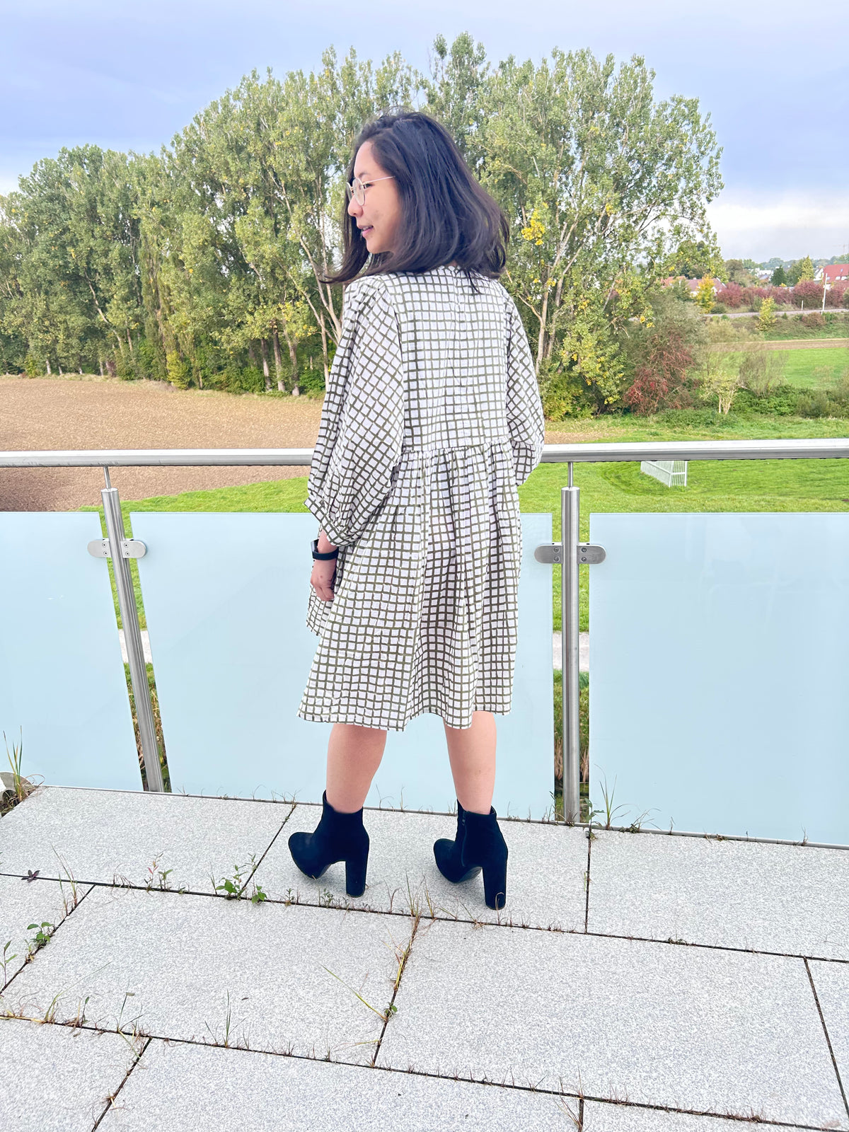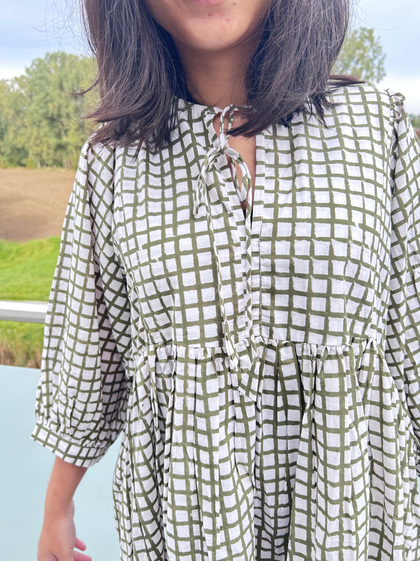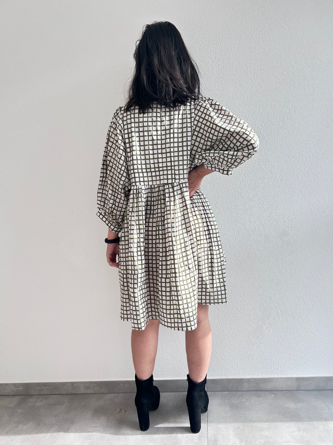Olive Grid Cotton Dress